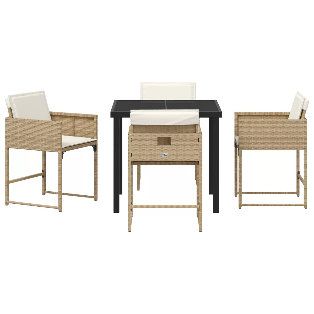5 Fős Kerti Étkezőszett Párnákkal Bézs Poli Rattan