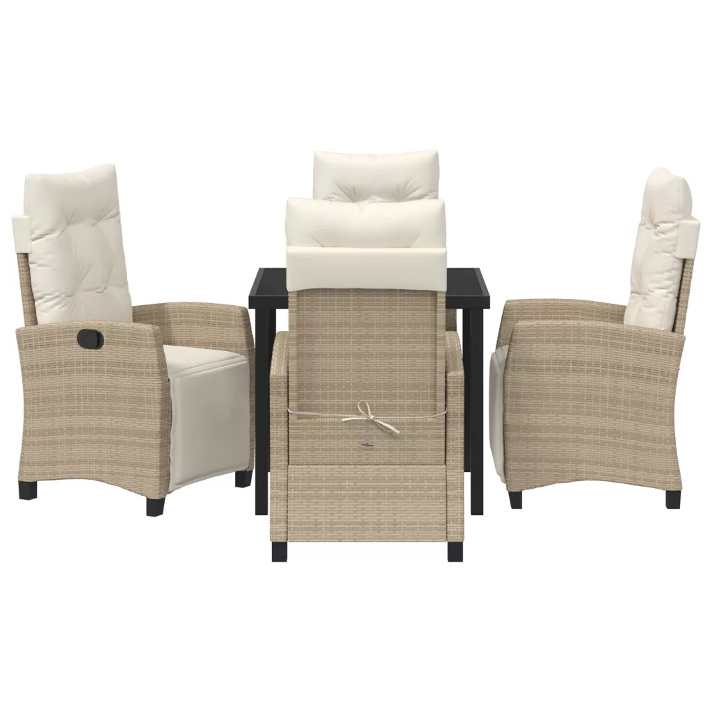 5 Részes Kerti Étkező Szett Bézs Poli Rattan