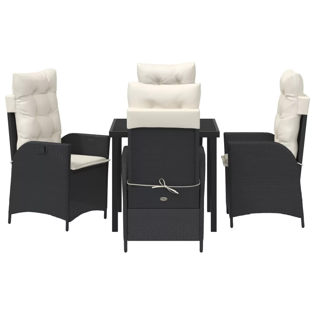 5 Részes Kerti Étkezősor Párnákkal Fekete Poli Rattan