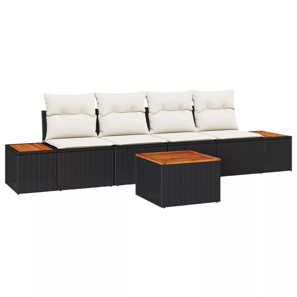 5 darabos Kert Kanapé Szett Párnákkal Fekete Polirattan Akác