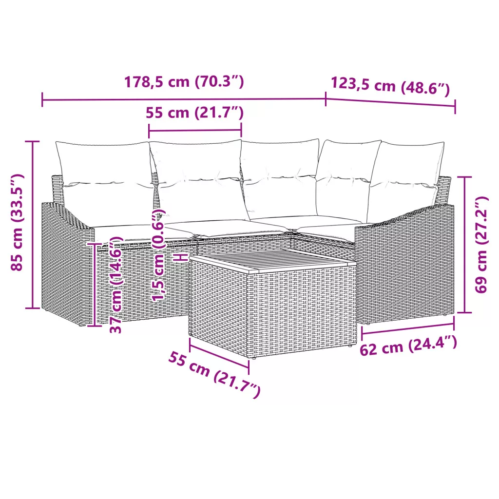 Ez a kerti kanapé készlet modern megjelenést ad, ami egy kis eleganciát csempész a kültéri helyiségekbe. A fekete műrattan és a puha párnák stílusos, hívogató légkört teremtenek, tökéletesek barátokkal való lazításhoz vagy napozáshoz. Hálásan tágas ülőhely: Kényelmesen elfér rajta 5 ember, így könnyedén szórakoztathatsz családot és barátokat. Tartós felépítés: Műrattanból készült, ami bírja az időjárást, miközben sokáig jól néz ki a kertben. Stílusos dizájn: Ennek a kanapé készletnek modern hangulata jól illik bármilyen kültéri helyhez, fokozza a dekorációt és kényelmet biztosít. Könnyen karbantartható: A levehető párnahuzatokat egyszerűen tisztíthatod, így a kanapé mindig friss és kedves marad. Falra szerelhető használat: Tökéletes napfényes lustálkodásra vagy összejövetel estékre, ez a készlet alkalmazkodik az igényeidhez, bármilyen kültéri alkalomhoz illik.