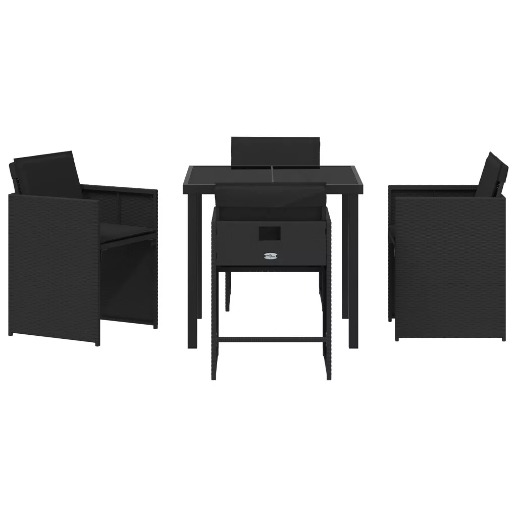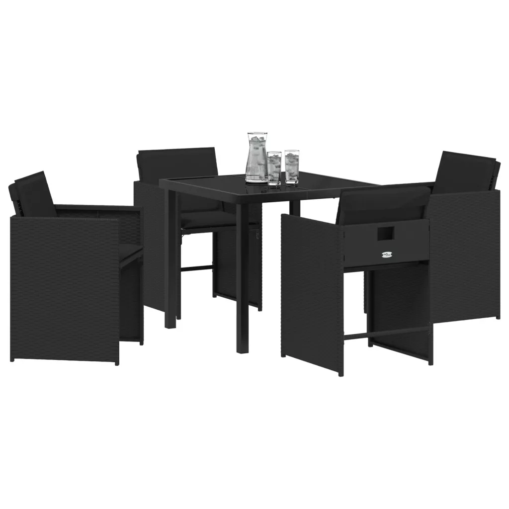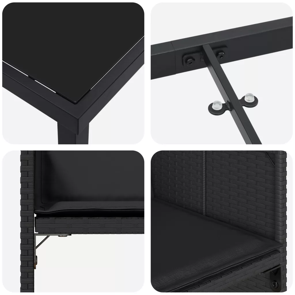 5 darabos kertészeti étkezőkészlet párnákkal fekete poli rattan