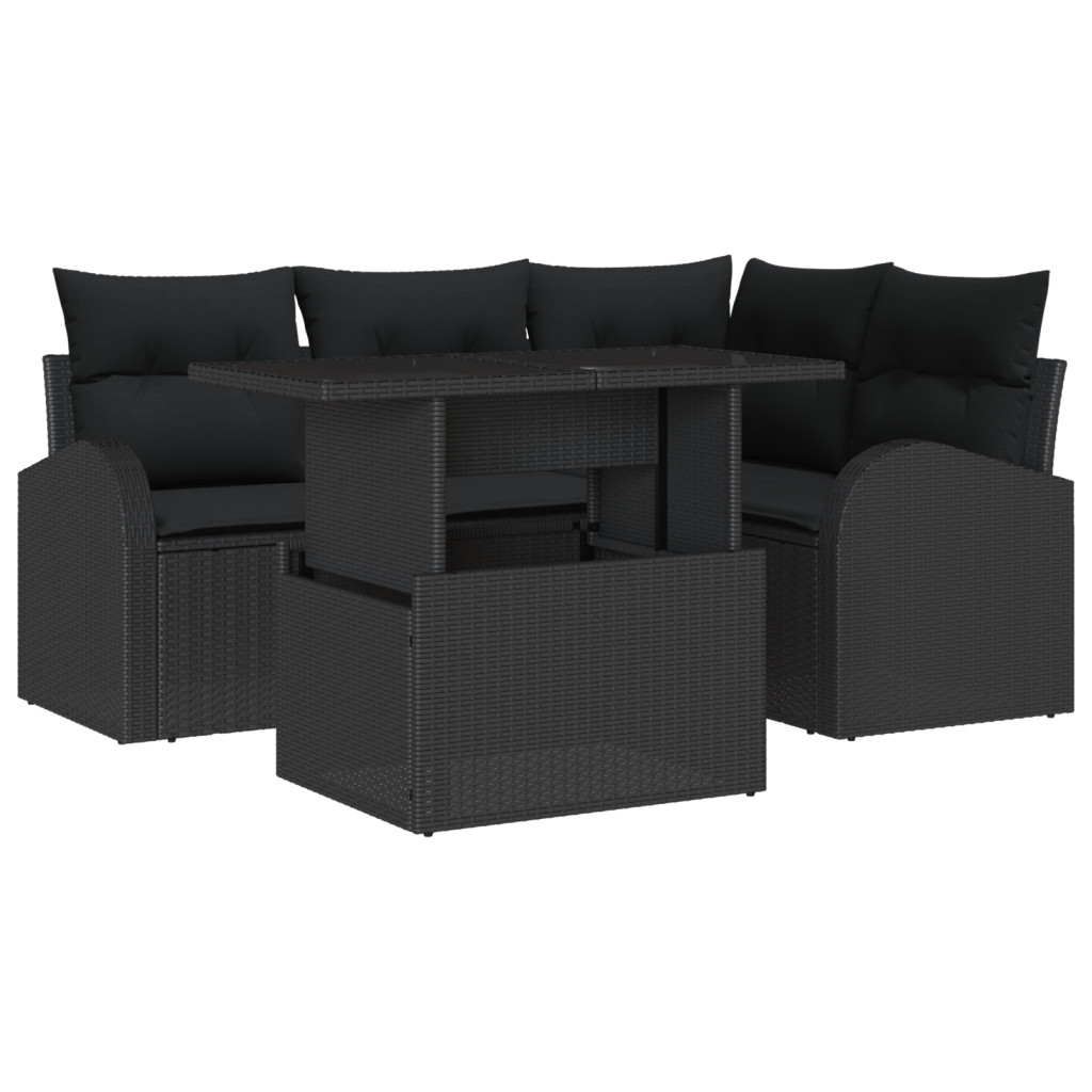 5 darabos kerti kanapé párnákkal fekete poli rattannal