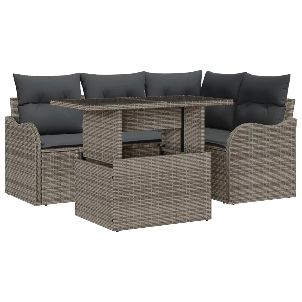 5 darabos kertibútor szett párnákkal szürke polirattan