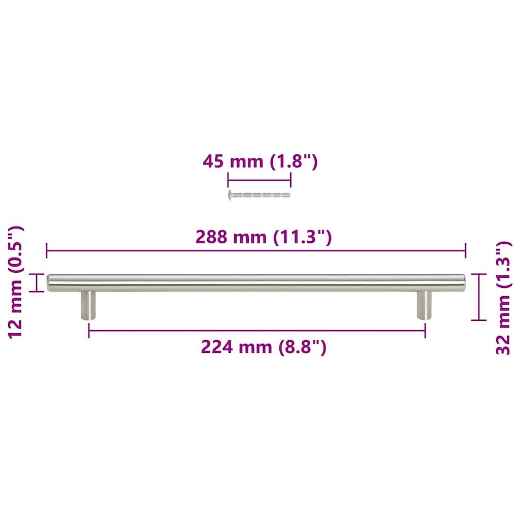 5 db ezüst rozsdamentes acél szekrényfogantyú 224 mm