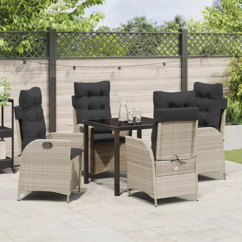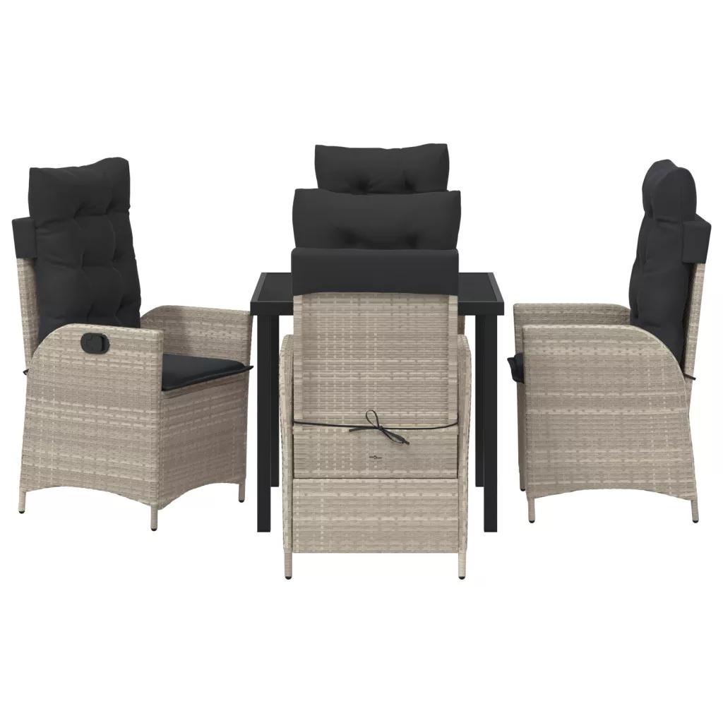 5 db-os Kerti Étkező Szett Párnákkal Világosszürke Polirattan