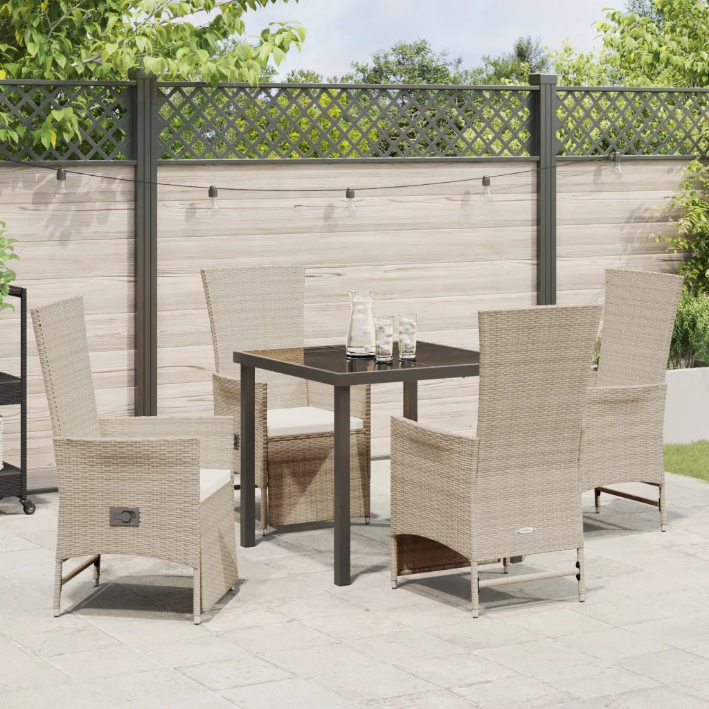 5 db-os kertivacsora készlet párnákkal bézs poli rattan