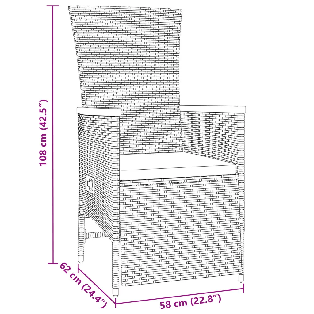Frissítsd fel a kültéri helyed a vidaXL dönthető kertiszékekkel, amik tökéletesek a pihenéshez és a stílusos megjelenéshez. Ez a készlet két széket és párnát tartalmaz, ideális a lazításhoz a balkonodon vagy teraszodon. Időjárásálló PE rattanból, ezek a székek stílusosak és tartósak. A gázlift mechanizmus megkönnyíti a háttámla beállítását, hogy maximális kényelmet élvezhess étkezés közben vagy csak pihenj. Maximum 110 kg ülésenként. Ügyeljen a nyílt tűz és más erős hőforrások veszélyére a termék közelében.