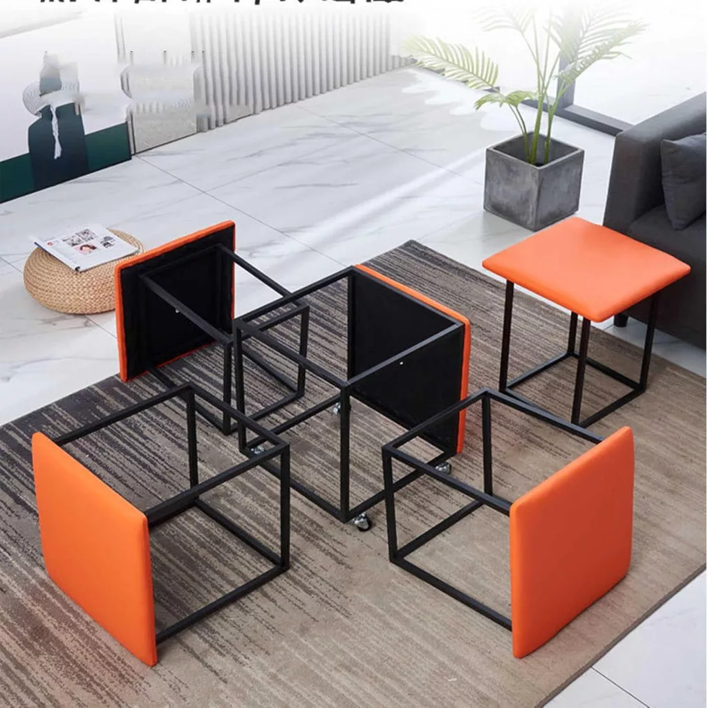 Key Features:This unique 5-in-1 Rubik’s Cube stool combines modern design with practicality. Constructed with a durable metal frame and upholstered in PU leather, its foldable structure and multifunctional use make it a perfect choice for the living room, office, or bedroom.