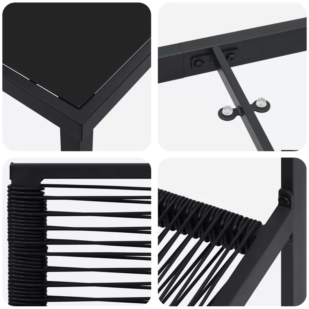 Ez a kerti szék készlet hangulatos helyet teremt a pihenéshez és a napsütés élvezetéhez, feldobva ezzel a kültéri élettered. Tartós PVC üreges rattanjából és szilárd porszórt acélból készült, ami ötvözi a letisztult designt a praktikummal. Felnőtteknek ideális, ez a készlet modern érintést ad, miközben kényelmet és támogatást biztosít a lazítós délutánokhoz. Vízhatlan anyagok: A székek készen állnak, hogy megóvjanak a fröccsenésektől és az esőcseppektől, tartósak és könnyen karbantarthatók, bármilyen időjárási viszony mellett, tökéletes kültéri összejövetelekhez. Stílusos és Modern: Sima fekete felületükkel ezek a székek ötvözik a funkcionalitást a dizájnnal, elegáns ülőhelyet biztosítva kültéri étkezéshez. Stabil Felépítés: A masszív acélkeret biztosítja, hogy ezek a székek biztonságosak és stabilak maradjanak, így zavartalanul élvezheted kültéri pillanataidat. Kényelmes Tágasság: Ez a négy darabos szék készlet nagyobb összejövetelekhez alkalmas, ideálissá téve étkezésekhez vagy a családdal és barátokkal való lazításhoz a szabadban. Könnyű Design: Az egyszerű mozgathatóságra tervezett székeket könnyedén bárhová áthelyezheted, gyorsan alkalmazkodva kültéri teredhez bármilyen alkalomra. Maximum 110 kg ülésenként.
