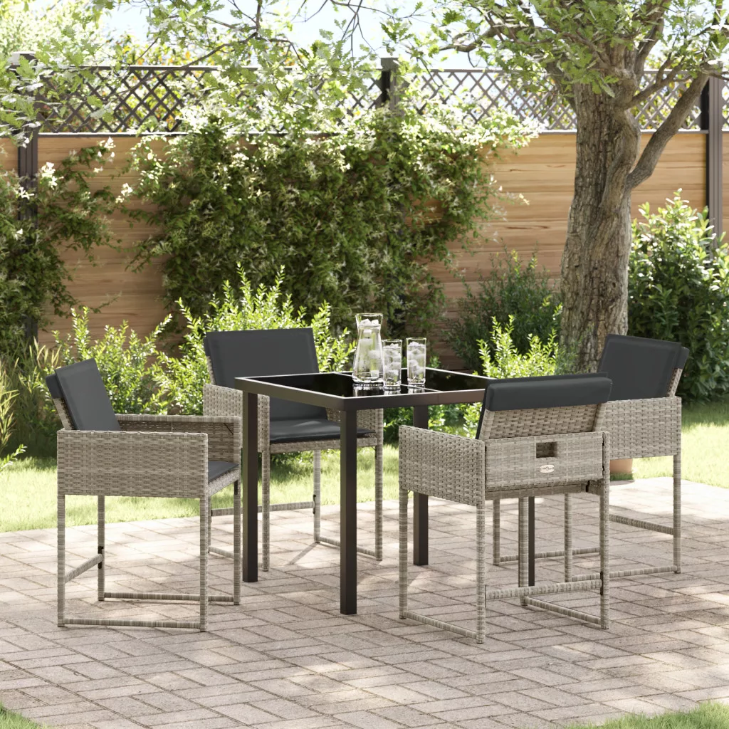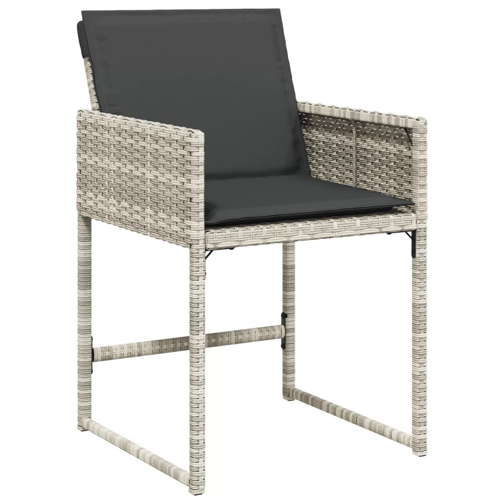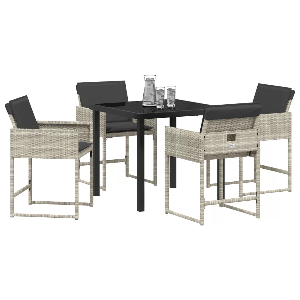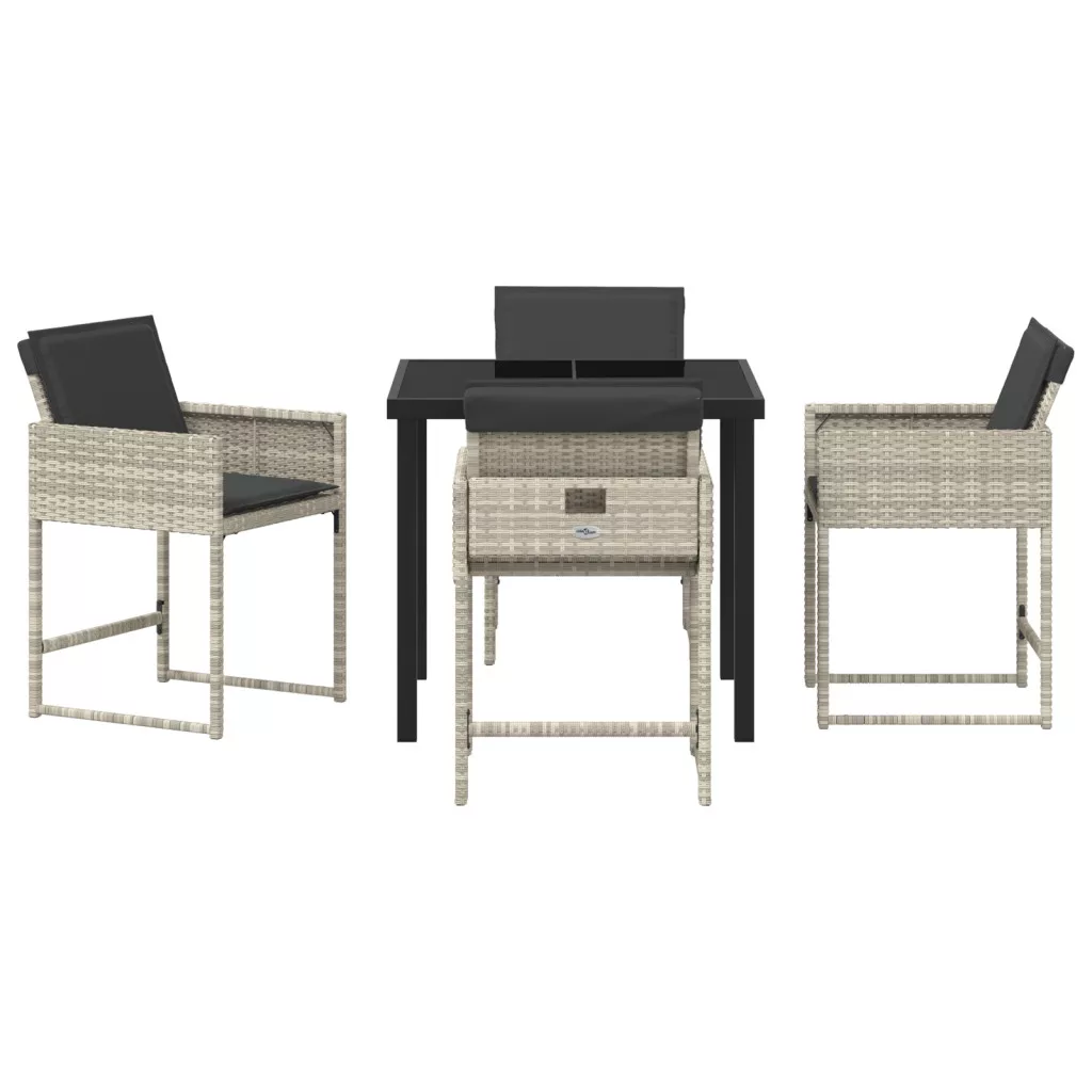 5 részes Kerti Étkezős Szett Párnákkal Világosszürke Poli Rattan