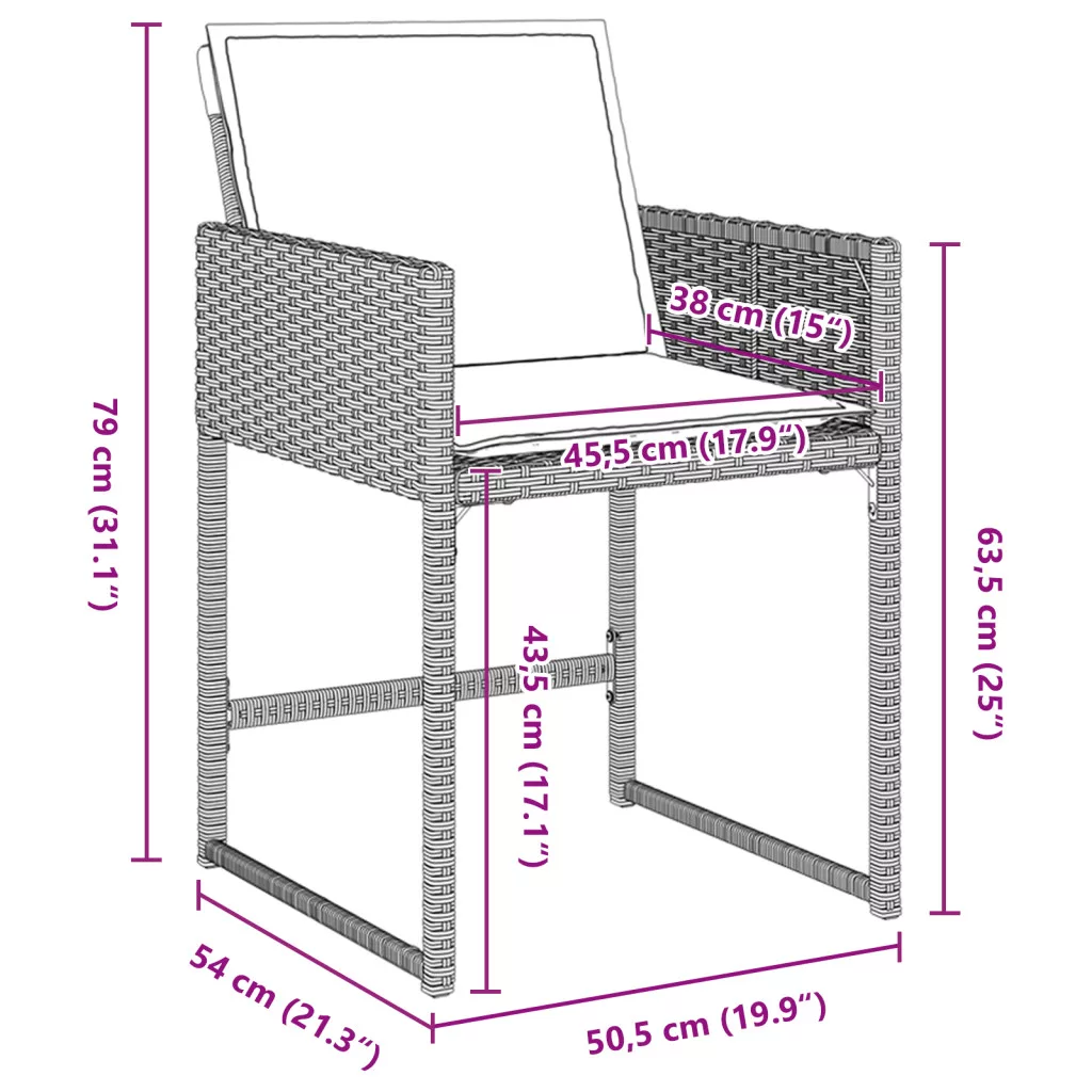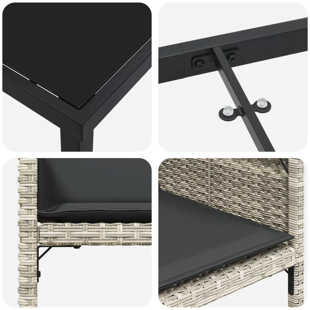 Ez a kerti étkezős szett stílus és kényelem kombinációja, letisztult modern dizájnnal, ami tökéletes kültéri használatra. Remek családi összejövetelhez vagy baráti lazításhoz, kényelmes székekkel és egy tágas asztallal érkezik, ami éppen jó az étkezéshez a teraszon, erkélyen vagy a kertben. Élvezd a gondtalan kültéri étkezéseket egy masszív asztallal és kényelmes ülőhellyel. UV-álló PE rattanból készült, így nem fakul el a napon. A szélek vastag párnákkal szerelve, hogy luxus érzést adjanak étkezés közben. Könnyen összecsukható dizájn, kompakt tárolásra, ha nincs használva. Gépben mosható párnahuzatok a könnyű tisztításhoz. Maximum 110 kg ülésenként. Ügyeljen a nyílt tűz és más erős hőforrások veszélyére a termék közelében.