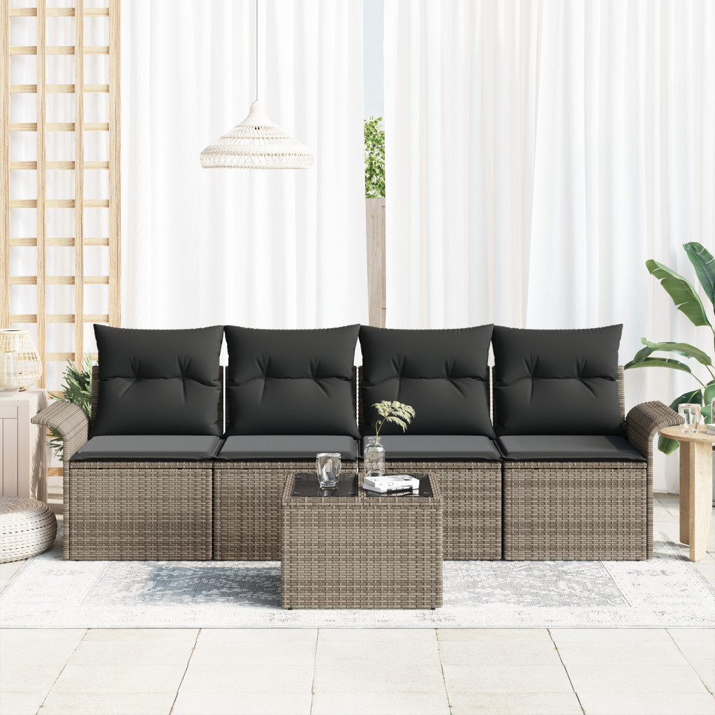 5 részes kertibútor szett párnákkal - Szürke polirattan