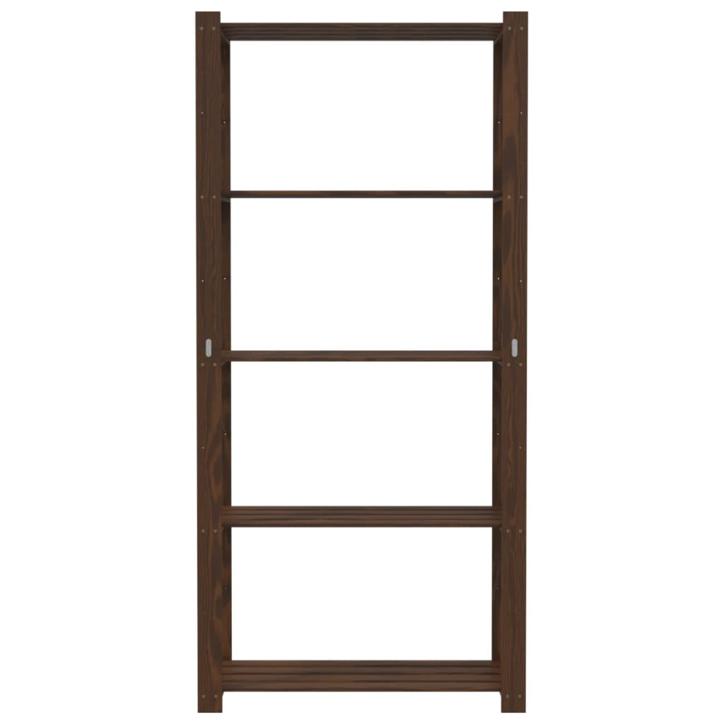 5 szintes barna tömör fenyőfa tárolóállvány 80 x 38 x 170 cm