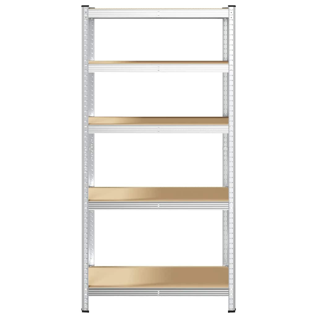 5 szintes ezüstszínű acél és szerelt fa nagy teherbírású polc