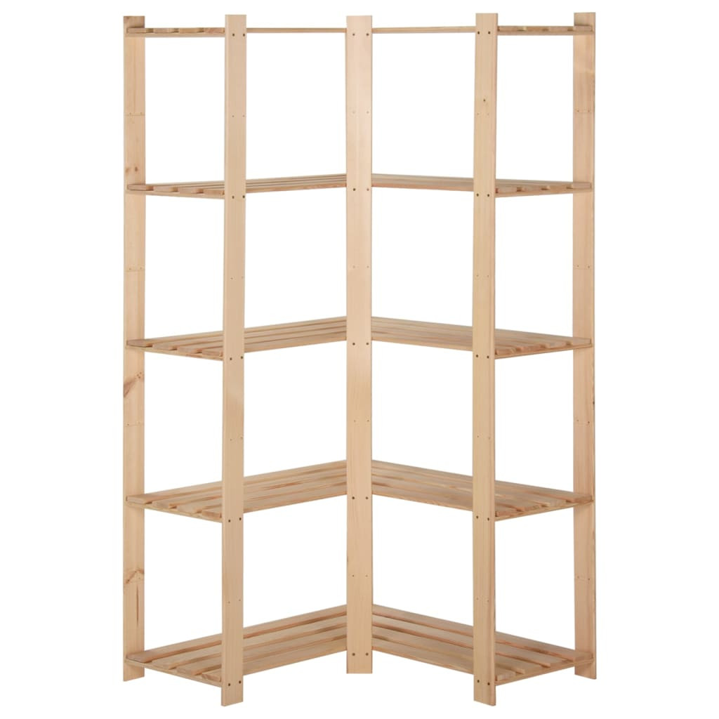 5 szintes tömör fenyőfa sarok-tárolóállvány 82,5x82,5x170 cm