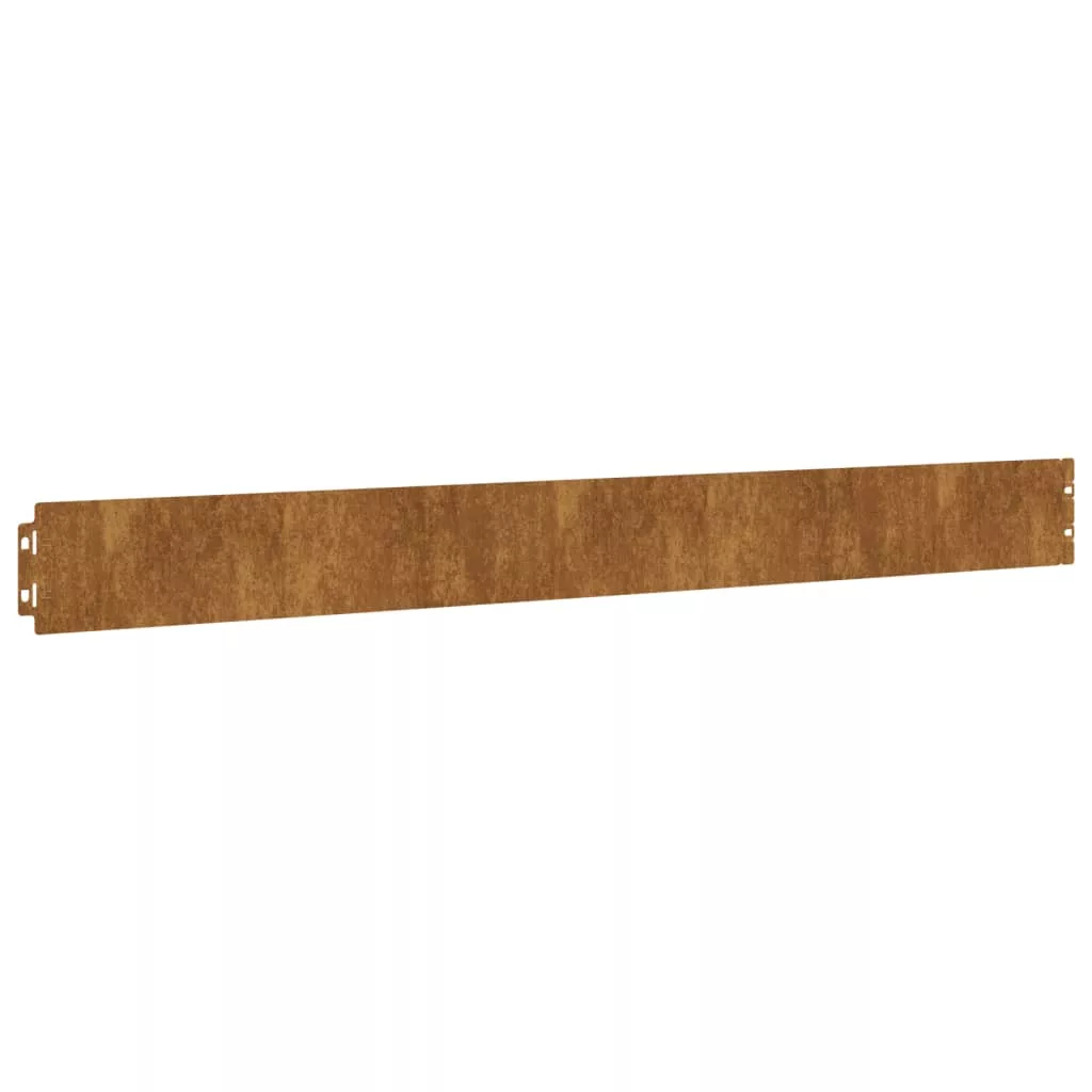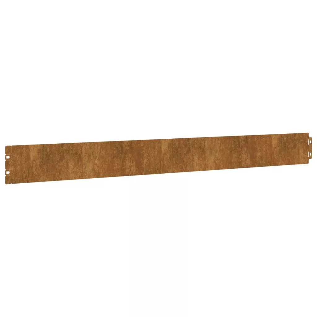 Ezek a pázsitszegélyek világos határt teremtenek a kert, ösvény, pázsit, és udvar számára, megakadályozva, hogy a fű a virágágyásokba terjedjen, kellemes megjelenést biztosítva a térnek. Tartós anyag: corten acél, más néven időjárásálló acél. Ez természeténél fogva korróziógátló hatású. Az első légköri hatásnak kitéve rozsdás védőréteget hoz létre a korrózió ellen. Így nem kell festeni. Ezáltal megtakaríthatja a karbantartási és javítási költségeket. A corten acél jellegzetes barna színe minden bizonnyal szemet gyönyörködtető lesz. Végül pedig, az időjárásálló acél rendkívül tartós, és kiállja az idő próbáját.Gyors és egyszerű csatlakoztatás: Az okos összekötő rendszer segítségével könnyedén csatlakoztatható a szegélyszegmensek szerszám nélkül.Széleskörű alkalmazás: Ez a sokoldalú gyepszegély széles körben használható kültéri területeken, például kertben, udvaron, erdős területen, úton, autóbeállón, virágágyásban stb. Jó tudni:Ez a termék még nem rozsdásodott és normál fémszínű, amikor megkapja, de idővel rozsda fog keletkezni rajta. Felgyorsíthatja a rozsdásodási folyamatot, ha szappanos vízzel és sós vízzel permetezi be. Annak érdekében, hogy ruhái foltmentesek maradjanak, kerülje az érintkezést a kialakuló rozsdaréteggel.