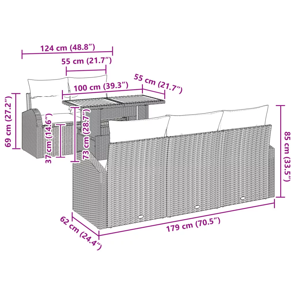 6 Darabos Kert Étkező Szett Párnákkal Fekete Poli Rattan Akáciával