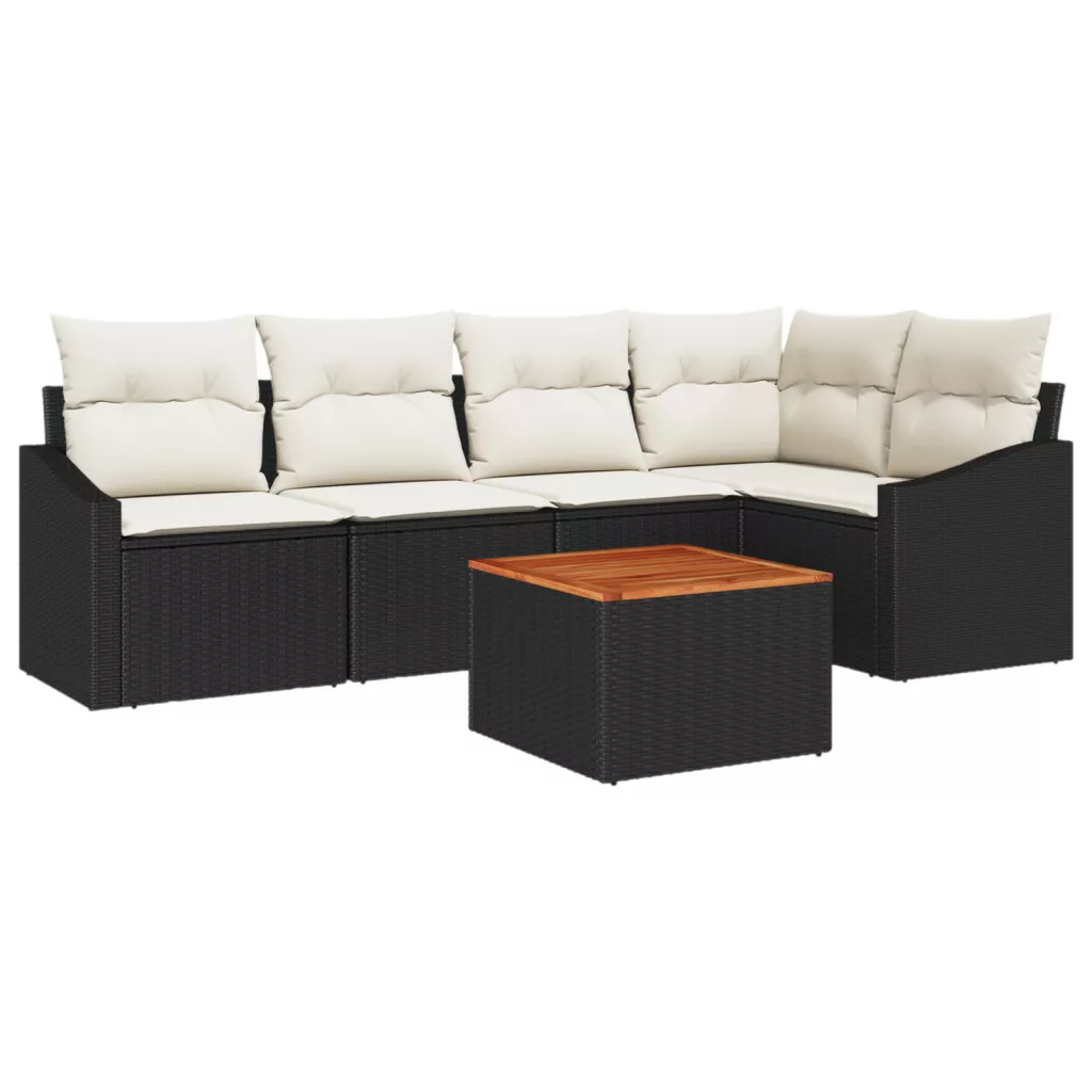 6 Darabos Kert Kávészó Párnákkal Fekete Poli Rattan Akác