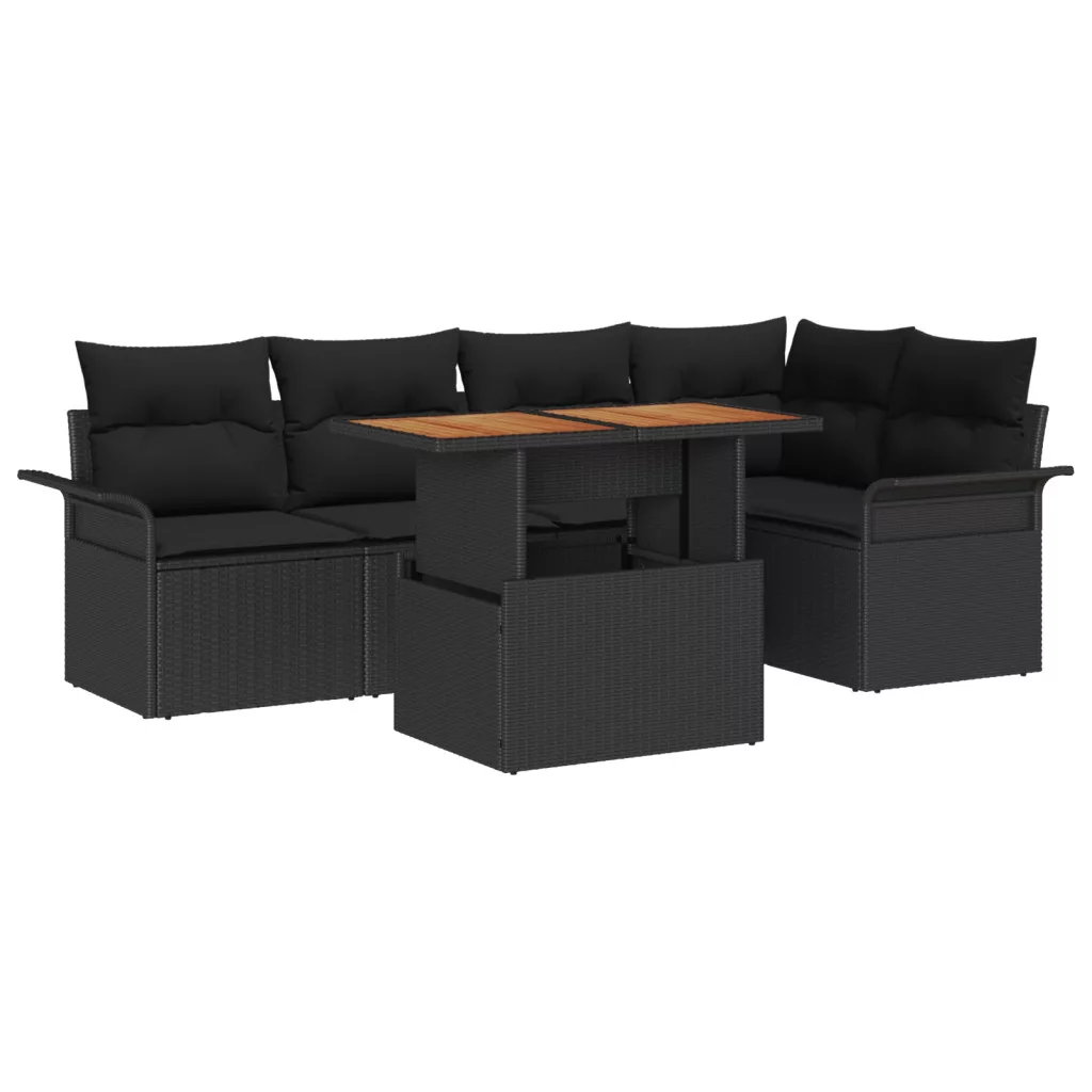 6 Részes Kerti Étkező Szett Párnákkal Fekete Poli Rattan Akácia