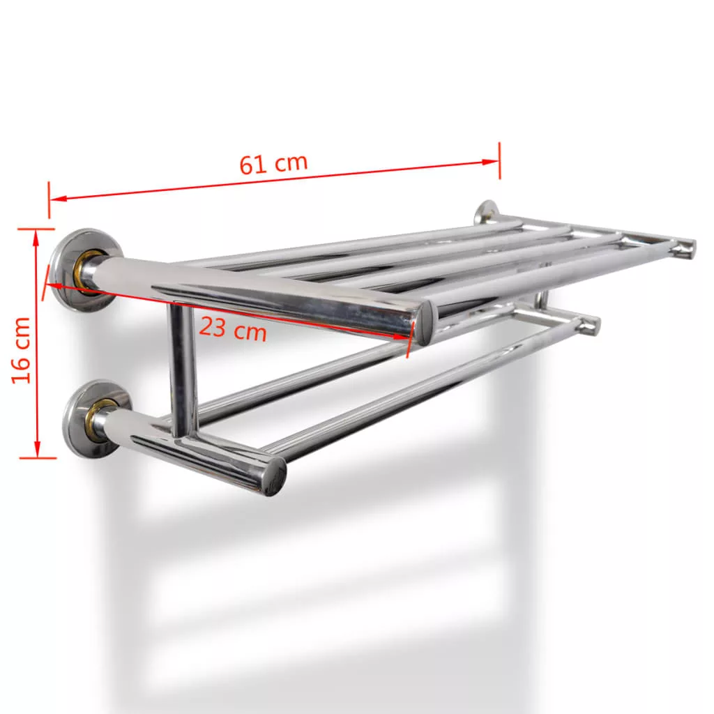 Ez a kiváló minőségű törölközőtartó modern és praktikus dizájnnal rendelkezik. Könnyedén falra szerelhető. A minőségi rozsdamentes acélból készült törölközőtartó 6 db, egyenként 60 cm hosszú csőből áll. A felső része extra helyet biztosít a fürdőköpenyek, fürdőszobai törölközők... stb. számára
