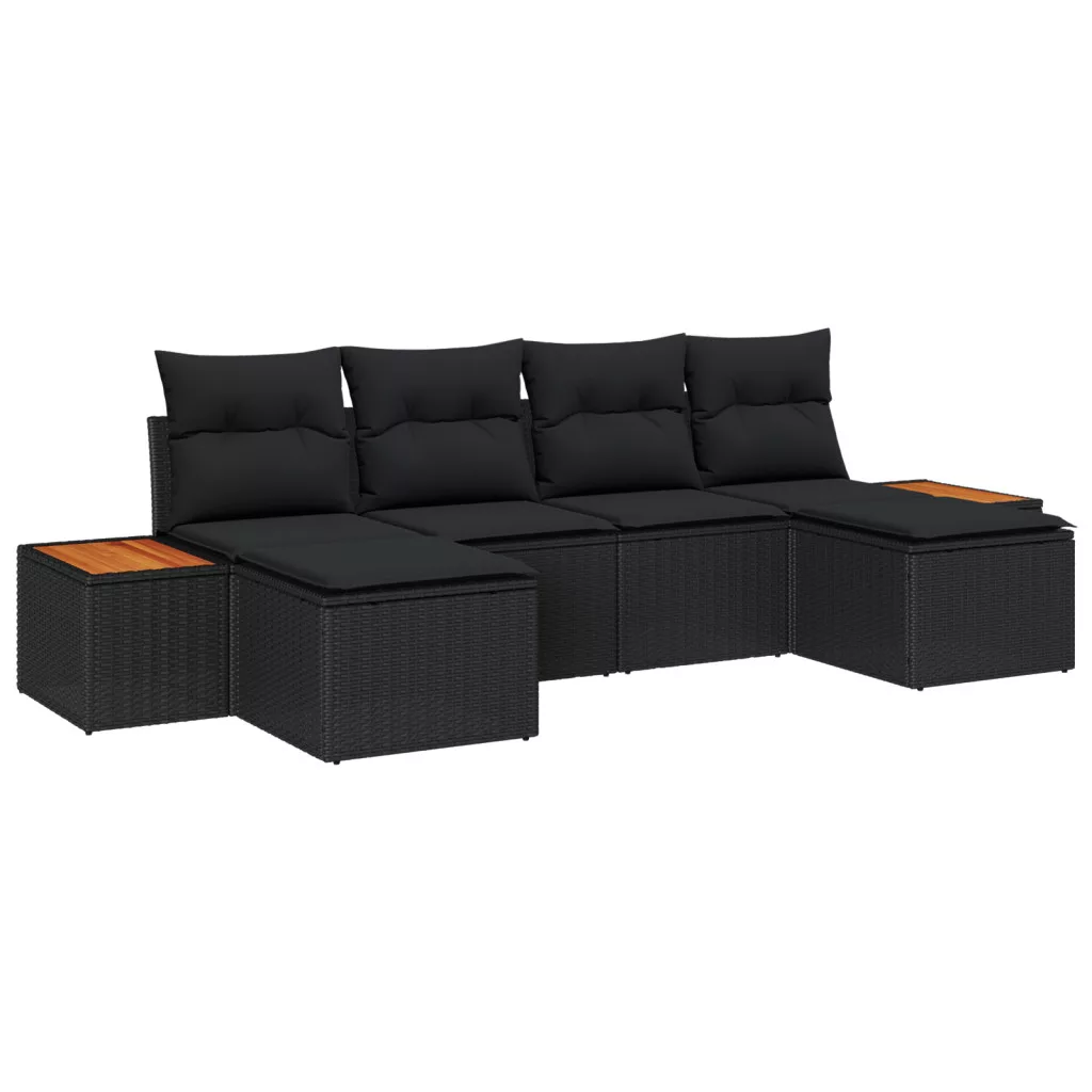 6 darab kert kanapé szett párnákkal fekete poli rattan akácia