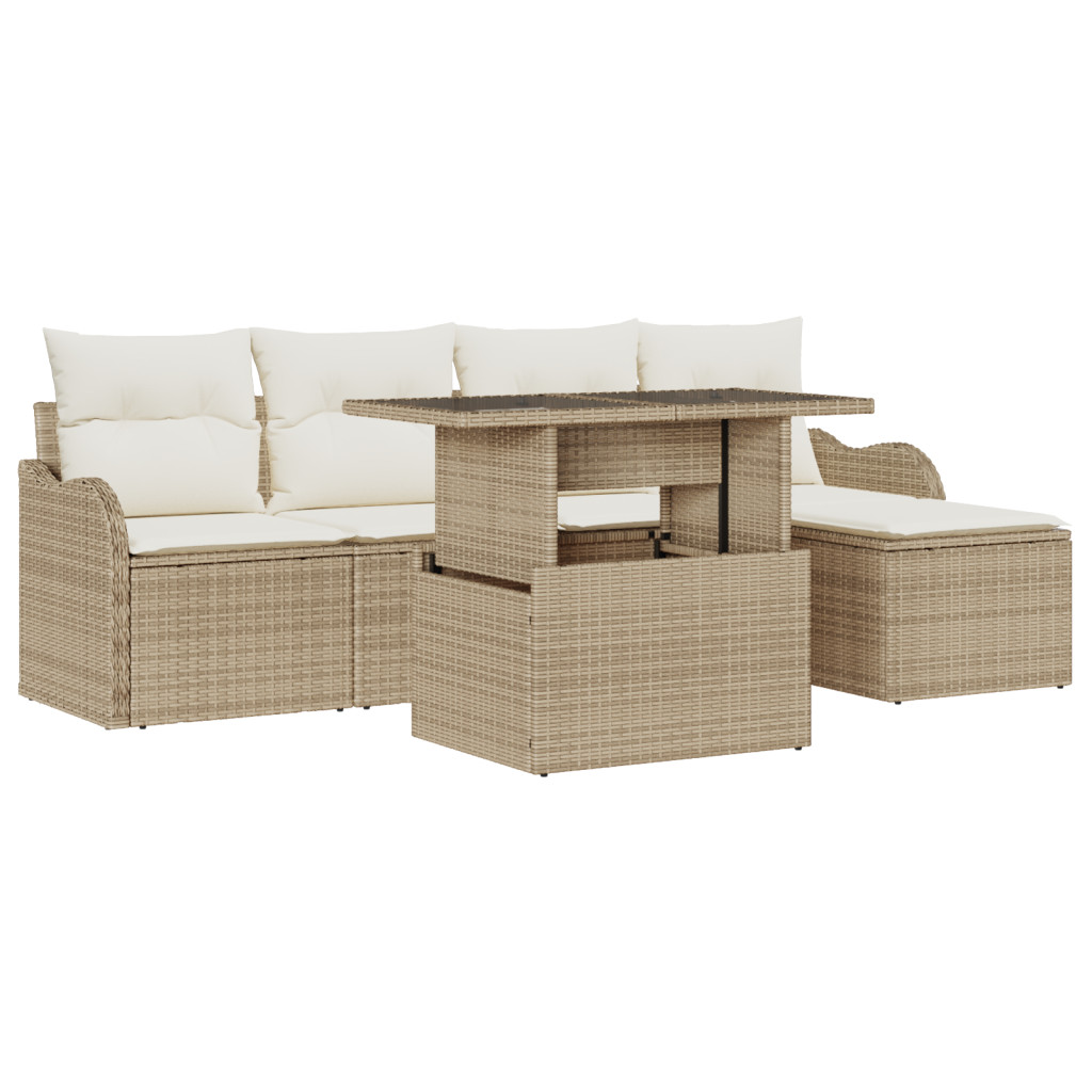 6 darabos Kert Sofa Szett Párnákkal Bézs Poli Rattan