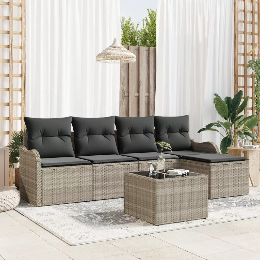 Ez a moduláris kerti kanapé szett okos választás a kültéri pihenéshez és szórakozáshoz. Trendis világosszürke poli rattan felülettel és kényelmes párnákkal érkezik, így feldobja a kültéri teredet, és remek hangulatot teremt. Stílusos megjelenés: A menő poli rattan szövés nemcsak jól néz ki, hanem a különböző időjárást is elviseli, stílusos hangulatot teremt bármilyen kültéri összejövetelen. Kényelmes párnák: Minden darab puha, levehető poliészter párnákkal van ellátva, amik kellemes ülést biztosítanak, luxus érzetet kölcsönözve a kültéri beállításodnak. Rugalmas elrendezés: Ez a szekciós kanapé akár öt ember számára is elfér, lehetővé téve, hogy az igényeid és a helyed szerint alakítsd át. Állítható dizájn: Az állítható lábak révén ez a kanapé alkalmazkodik az egyenetlen talajhoz, biztosítva, hogy a helyén maradjon és kényelmes legyen. Kültéri használatra készült: Kültéri használatra készült, a szövet borítóját könnyű karbantartani, és nem fakul, így a bútorod évekig jól néz ki.