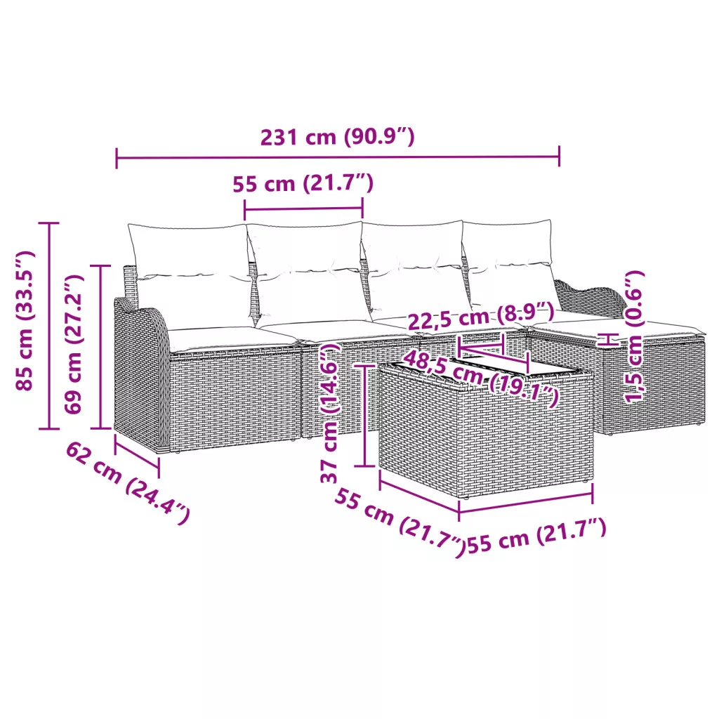 6 darabos kerti kanapészett párnákkal bézs polirattan