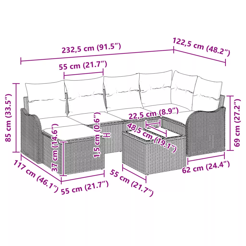 Ez a kertibútor szett modern és praktikus dizájnú, ami ideális a kültéri lazításhoz vagy barátok fogadásához. Rengeteg elrendezési lehetőséget kínál, így maximális rugalmasságot biztosít a kültéren. Rugalmas dizájn: A kanapé moduláris elemei rengeteg módon összeállíthatók, így a helyedhez igazíthatod. Kényelmes ülőhely: Minden elemhez kellemes párnák tartoznak, amelyek strapabíró poliészter anyaggal vannak borítva, tökéletes a napozáshoz vagy a hűvösebb estéken való pihenéshez. Tartós anyagok: Magas minőségű rattanból készült, ez a kültéri szett tartós és ellenáll az időjárás viszontagságainak, így hosszú távú dísze lesz a kertednek. Könnyű karbantartás: A párnák cipzárral könnyen eltávolíthatók és tisztíthatók, így a rendben tartás gyerekjáték. Stílusos megjelenés: Az elegáns szürke árnyalatok szépen illeszkednek a természetbe, egy kis eleganciát adva.