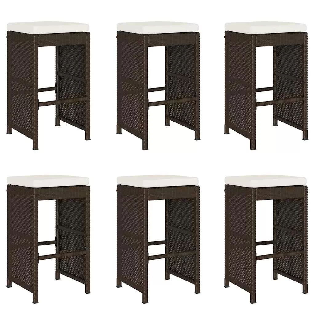 6 db barna polyrattan kerti bárszék párnával