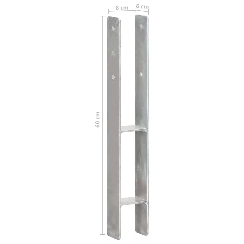6 db ezüstszínű horganyzott acél kerítéshorgony 8 x 6 x 60 cm