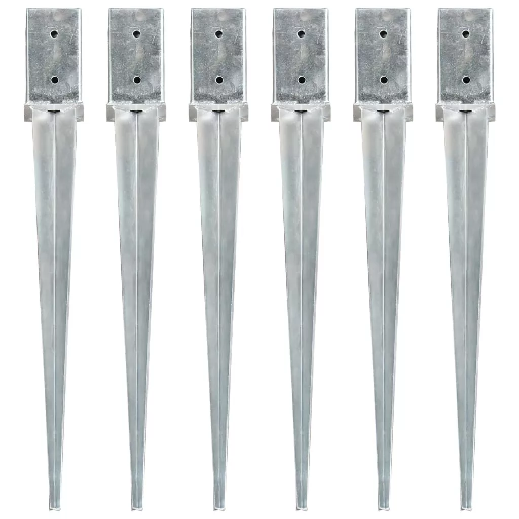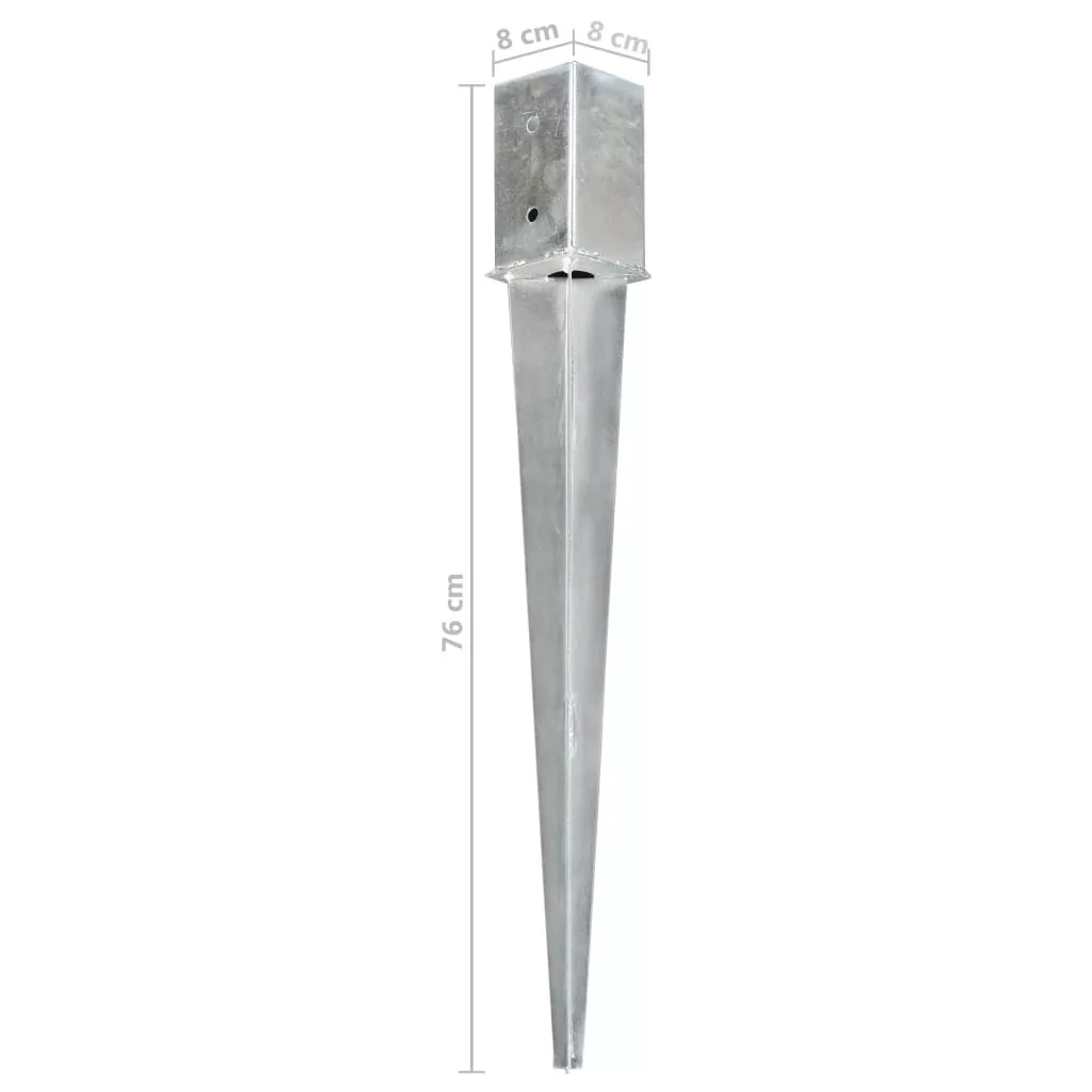 6 db ezüstszínű horganyzott acél kerítéstüske 8 x 8 x 76 cm