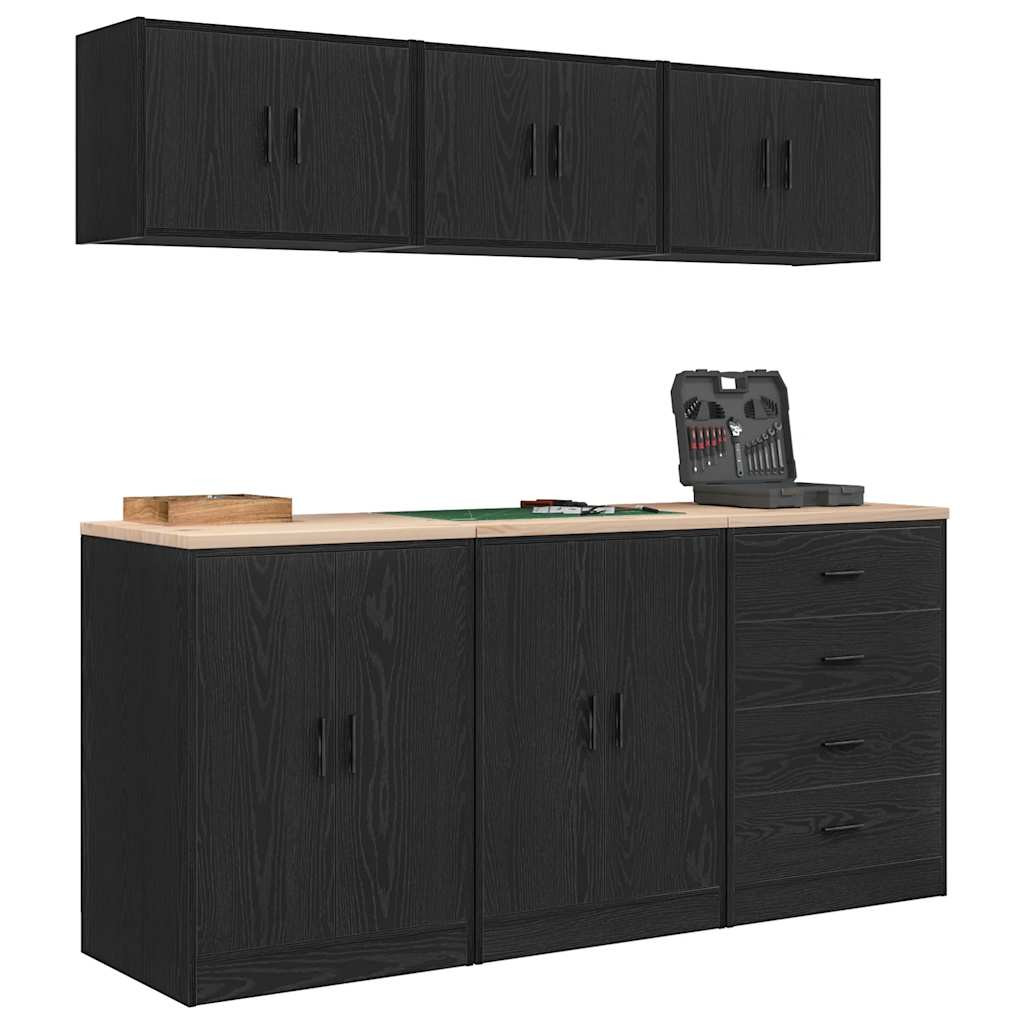 6 db fekete szerelt fa garázs szekrények