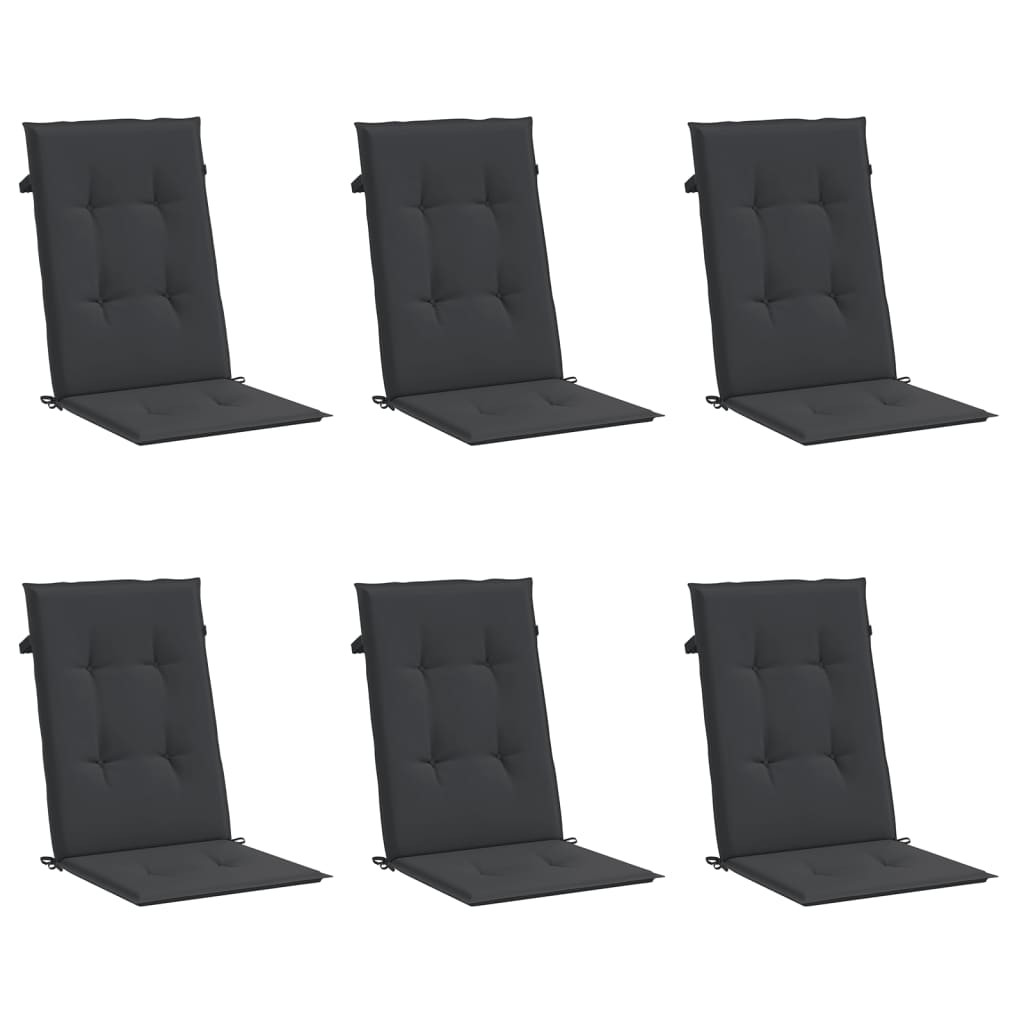 6 db fekete szövet kerti magas háttámlájú székpárna 120x50x3 cm