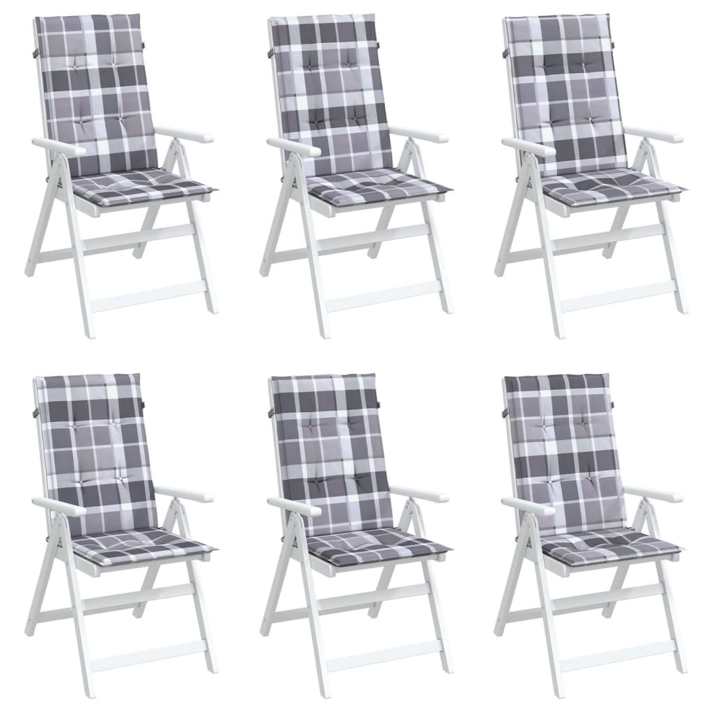6 db szürke kockás szövet magas háttámlájú székpárna 120x50x3cm