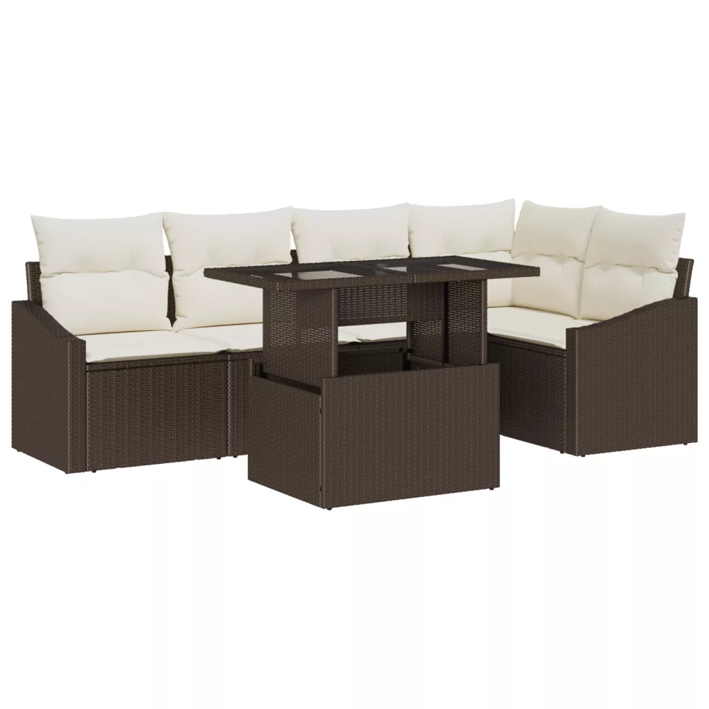 6 részes kerti kanapé garnitúra párnákkal barna poli rattan