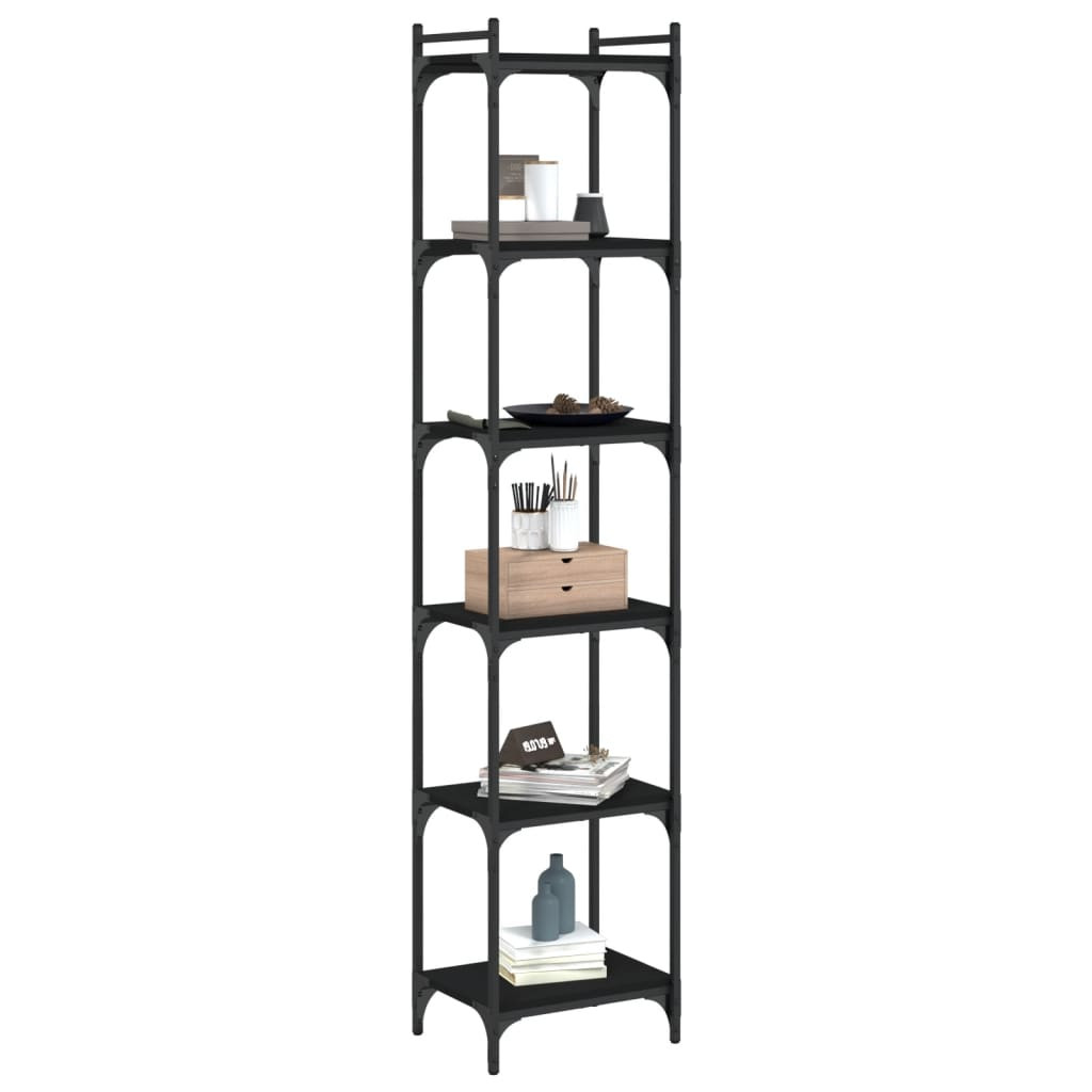 6 szintes fekete szerelt fa könyvespolc 40 x 30 x 188 cm