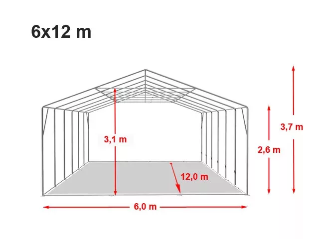 Side height: 260 cm / Ridge height: 350 cmEach side wall is equipped with large windows.The side walls are removable.The door is roll-up type.