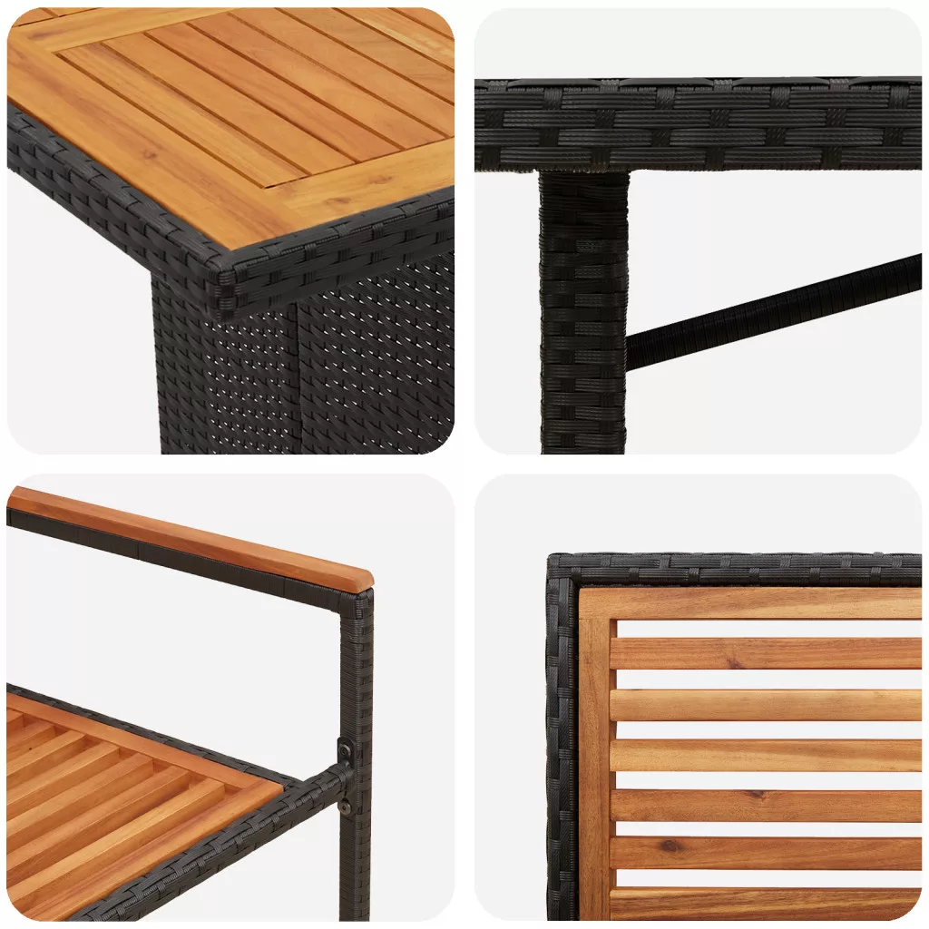 7 Darabos Kerti Étkező Szett Fekete Poli Rattan Akácfa