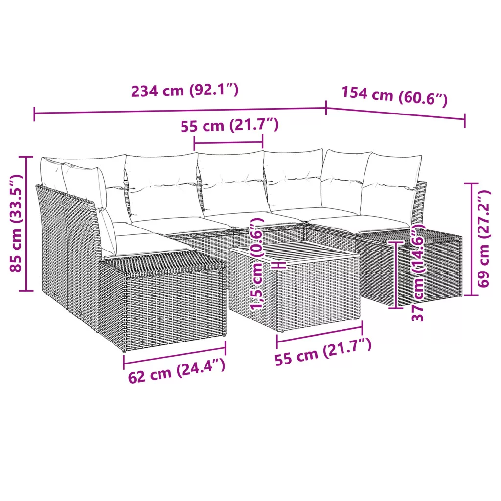 Szállítás tartalma: 2 x Középső ülés tároló funkcióval, 2 x Sarok ülés tároló funkcióval, 2 x Kanapé tároló funkcióval, 1 x Kert asztal