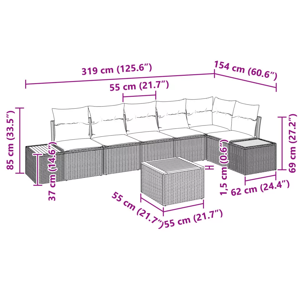 7 darab Kerti Kanapé Készlet Párnákkal Fekete Poli Rattan Akácia