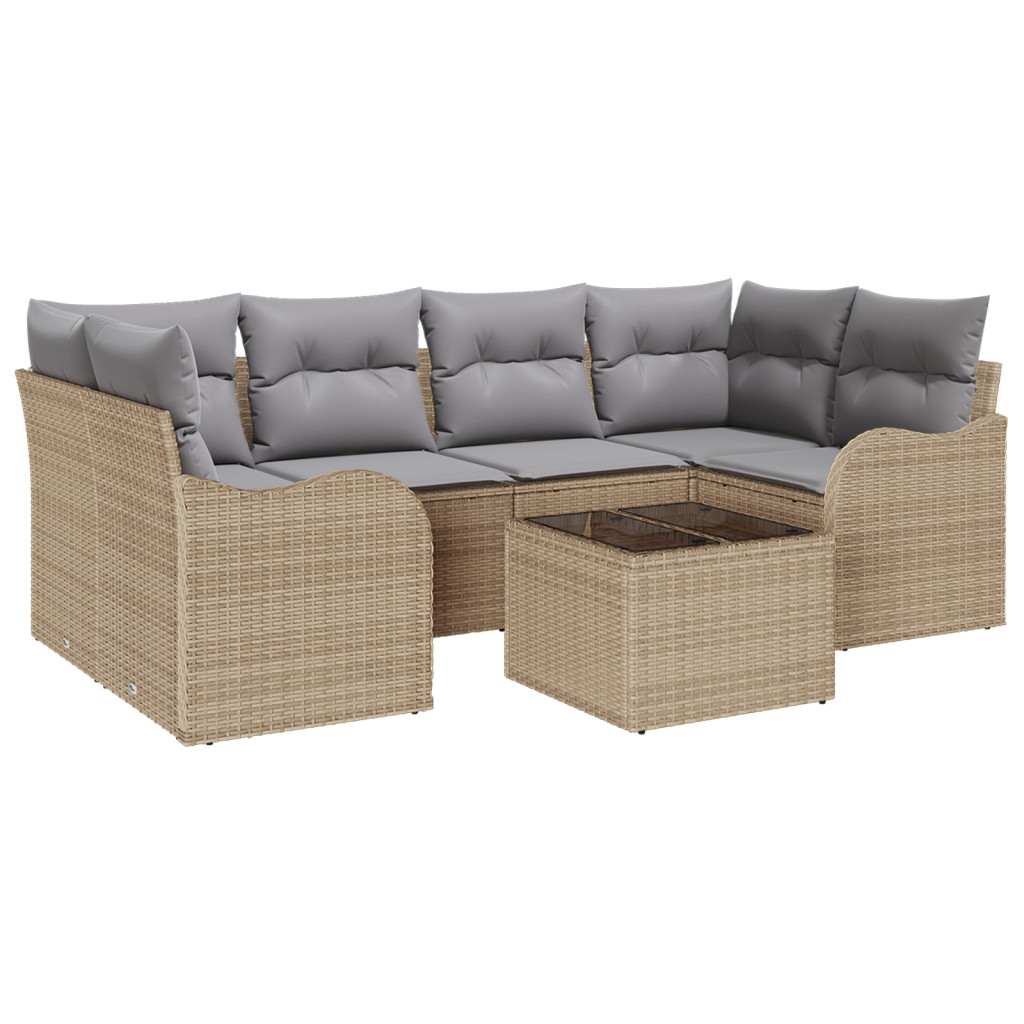 7 darabos Kert Kanapé Szett Párnákkal - Bézs Poli Rattan