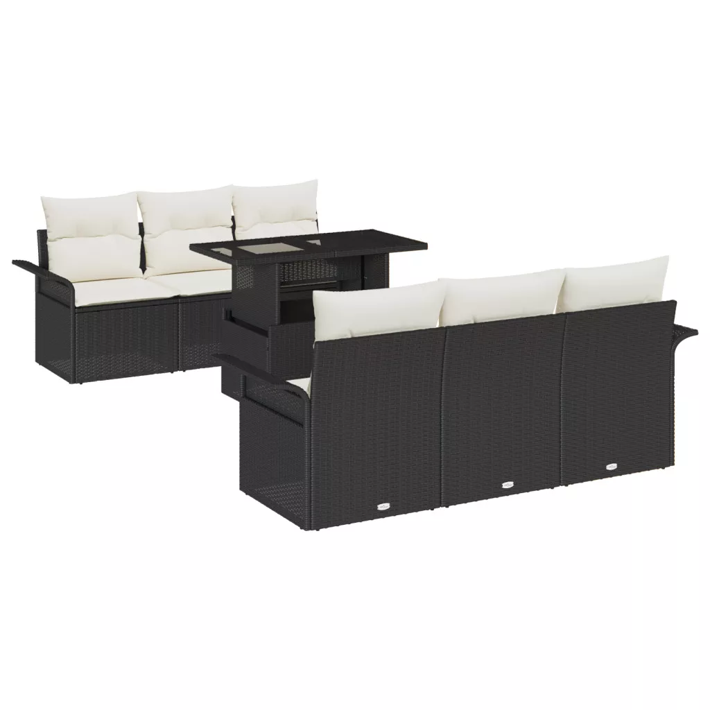 7 darabos Kerti Kanapé Szett Párnával Fekete Poli Rattan