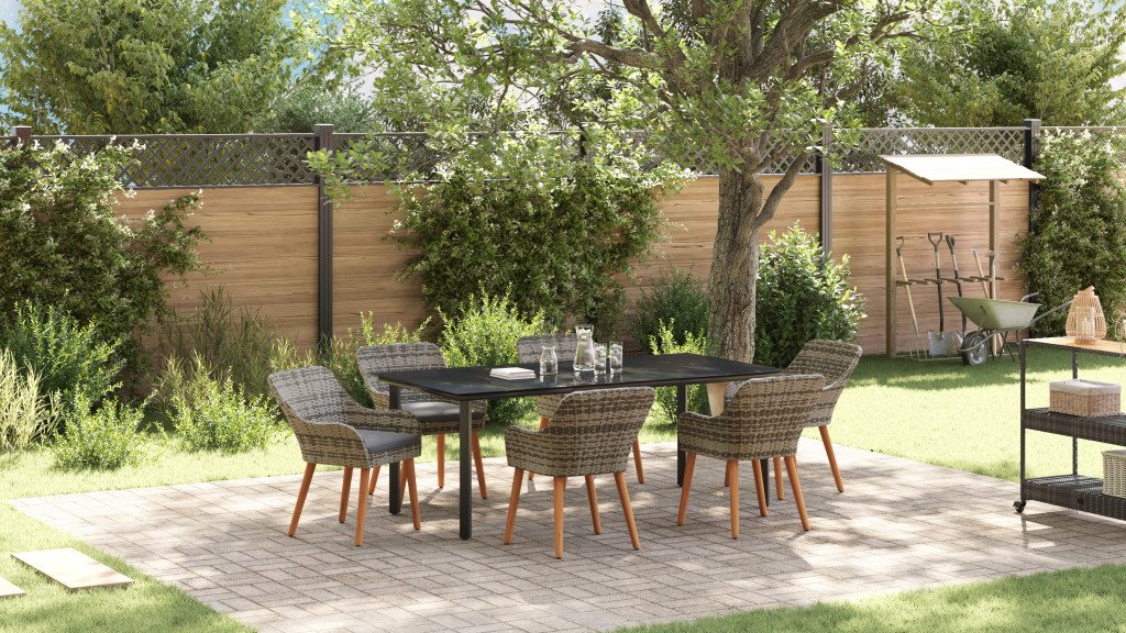 Ez a stílusos kültéri étkező garnitúra modern megjelenést hoz a praktikus dizájnnal, ami szuper választás a kültéri étkezésekhez és összejövetelekhez. A téglalap alakú asztal és a hat szék feldobja a balkonodat vagy a kertedet, remek hely a barátokkal és a családdal való együtt étkezésekhez. Tömegmasszív kivitel: Ez az étkező garnitúra elsőrangú anyagokból készült, biztosítva, hogy kültéri használatra elég tartós legyen. Kényelmes: Párnázott karfák és háttámlák találhatók, így minden ülés a hosszan tartó étkezések kényelméről szól. Sokoldalú használat: Tökéletes minden féle kültéri helyszínre, az intim erkély vacsoráktól a nagy kert partikig, élvezetesebbé téve a kültéri időt. UV-álló: Kifejezetten arra tervezték, hogy bírja a durva napsütést anélkül, hogy kifakulna, így a garnitúrád sokáig jól néz ki. Könnyű karbantartás: Az anyagok könnyen tisztíthatók, így több időd marad a barátokkal és a családdal.