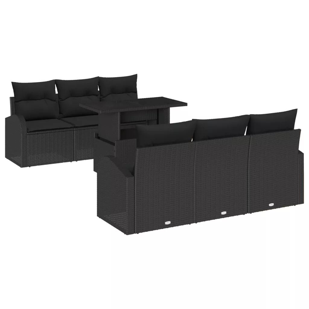 7 darabos kertibútor szett párnákkal fekete poli rattanból
