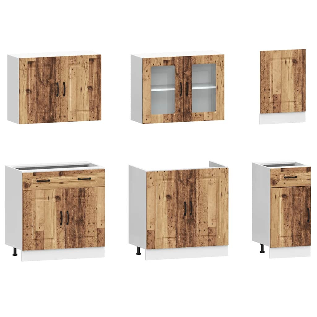 7 darabos konyhaszekrény készlet régi fából készült műfa