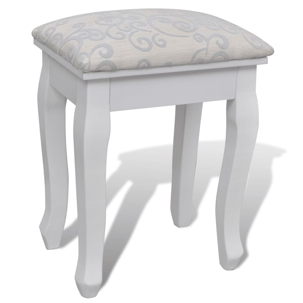 7 fiókos fehér fésülködőasztal tükörrel és zsámollyal