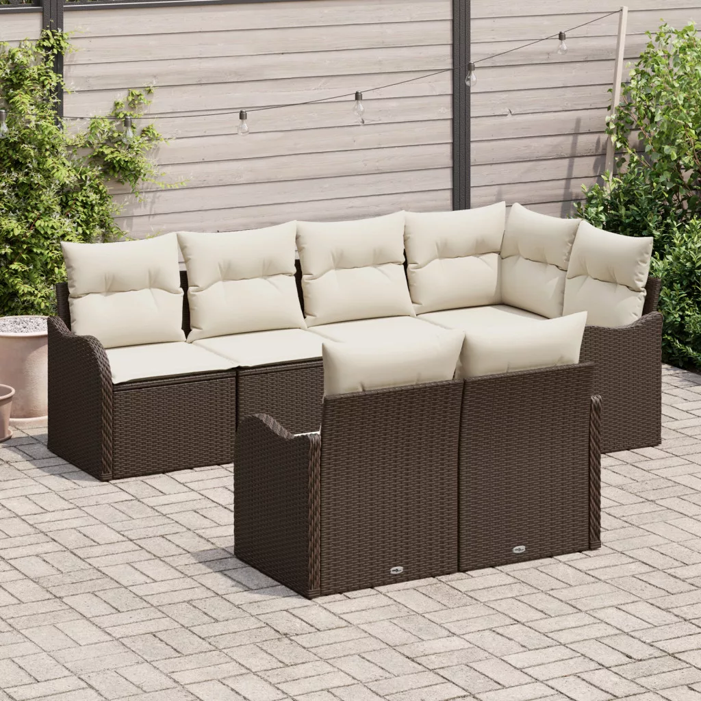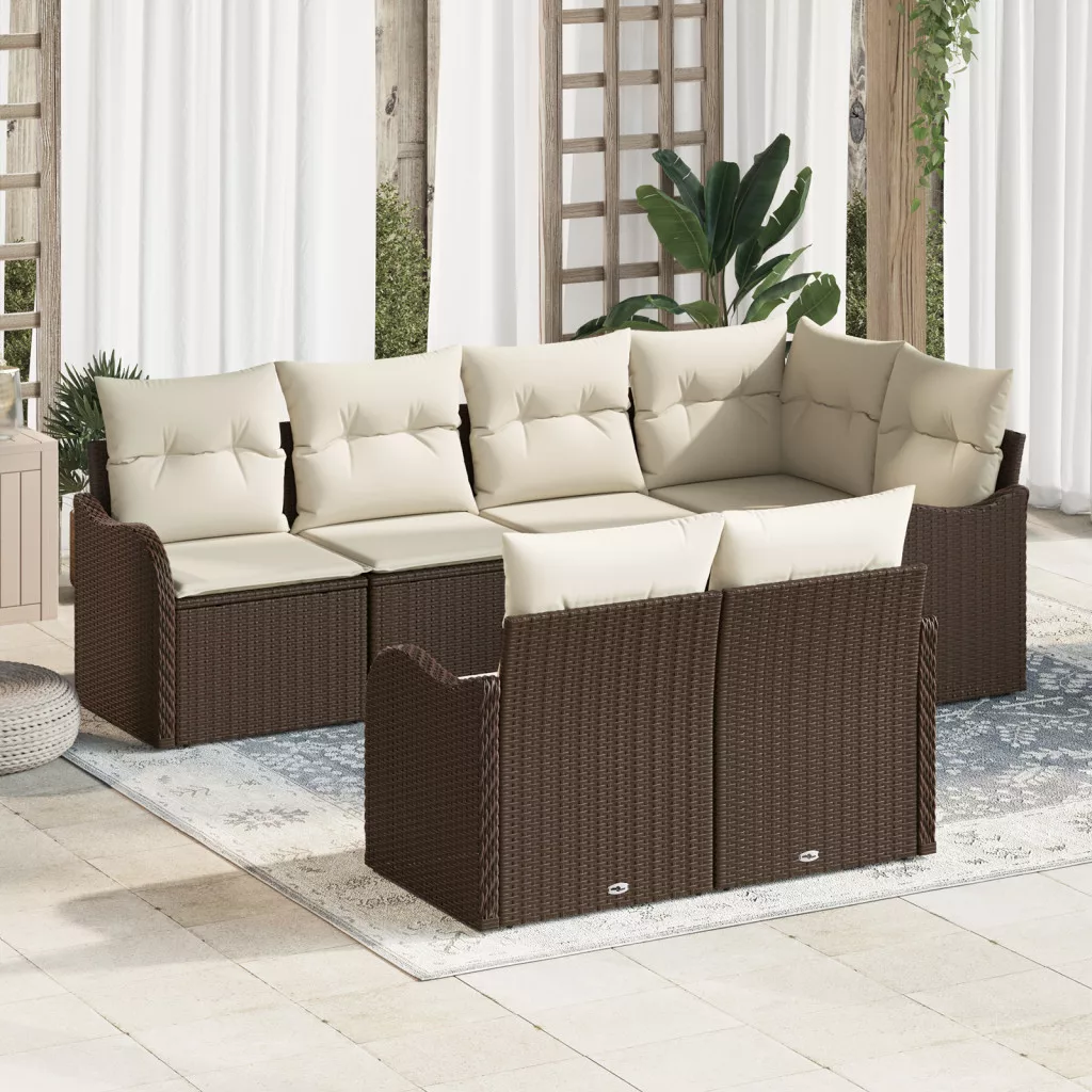 7 részes kerti kanapé szett párnákkal barna polirattan