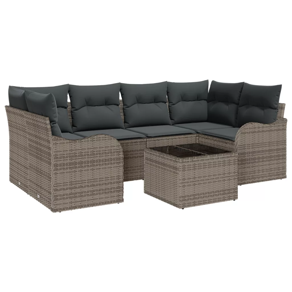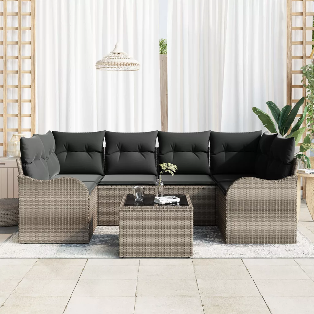 7 részes kerti kanapégarnitúra párnákkal szürke poli rattan
